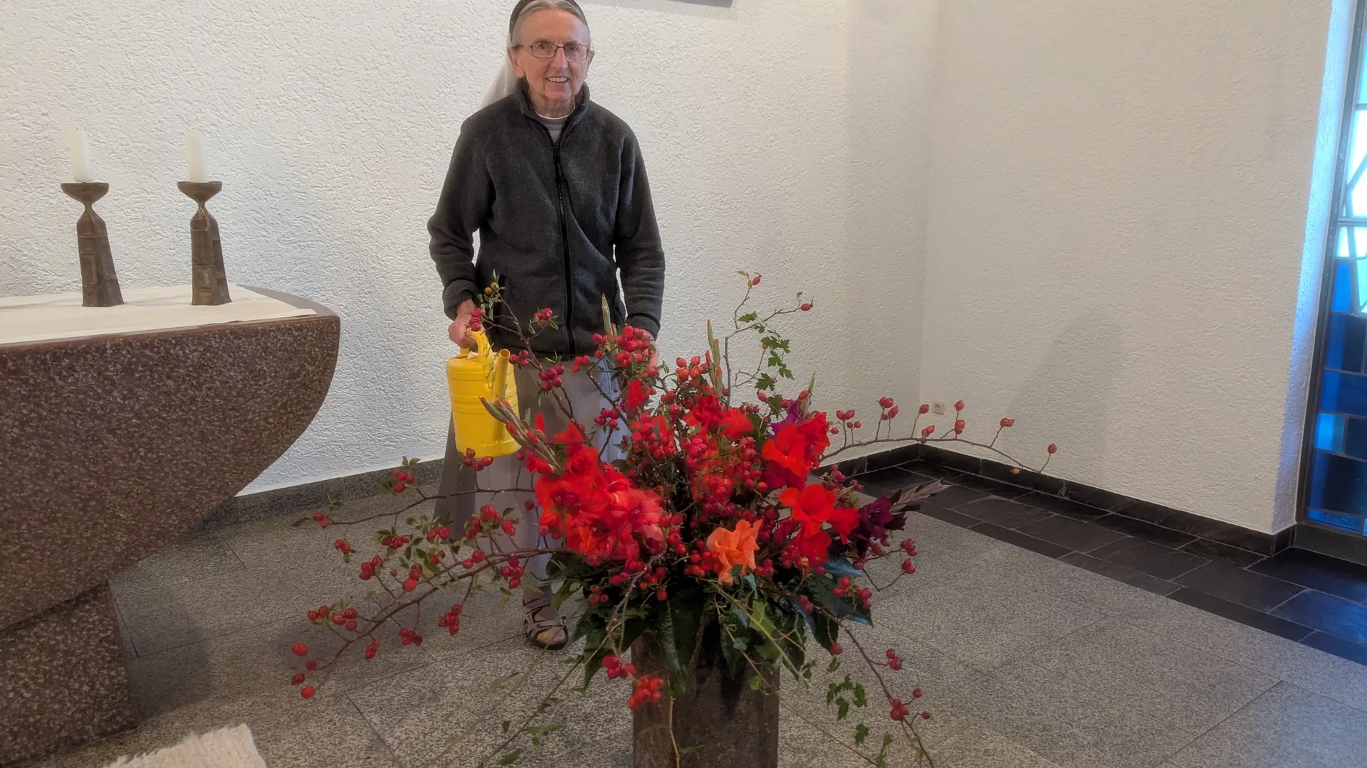 Mit reicher Blumenfülle sind wir Schwestern Tag für Tag in unserer Kapelle und in vielen anderen Räumen beschenkt. Nur in der Passionszeit und Adventszeit verzichten wir.